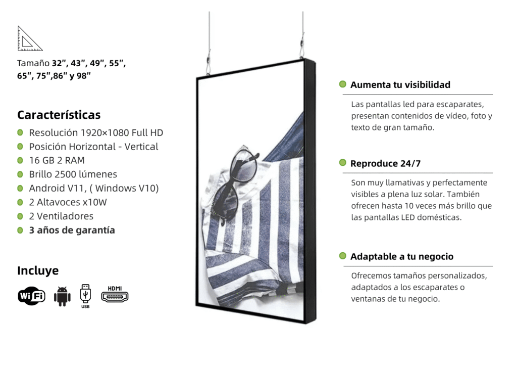 Incluye instalación a techo, pared y soporte de suelo.